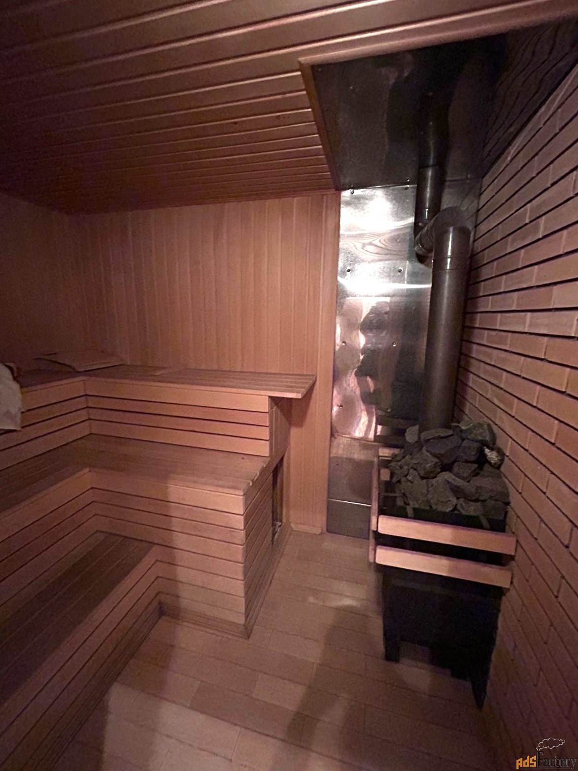 Баня: отдельно стоящее строение из пеноблока, утеплена, заведены вода и газ. На первом этаже сауна, душ и кухня, на втором этаже комната.