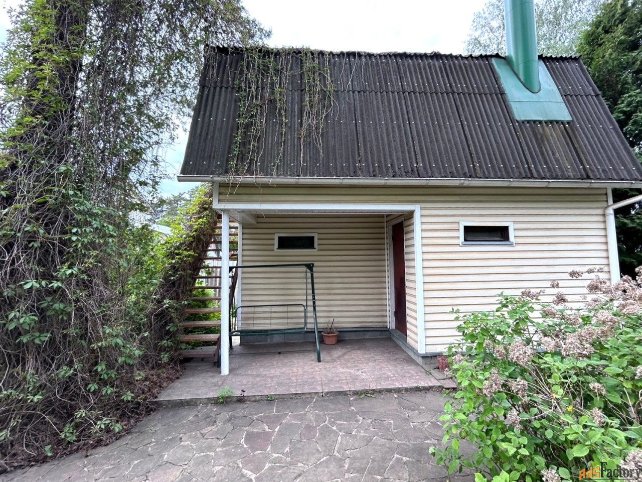 Участок: 12 соток, ухоженный, огорожен забором, есть калитка и ворота, место для стоянки автомобиля, зоны отдыха. Высажены плодовые деревья, много цветов. До ворот асфальтированная дорога.