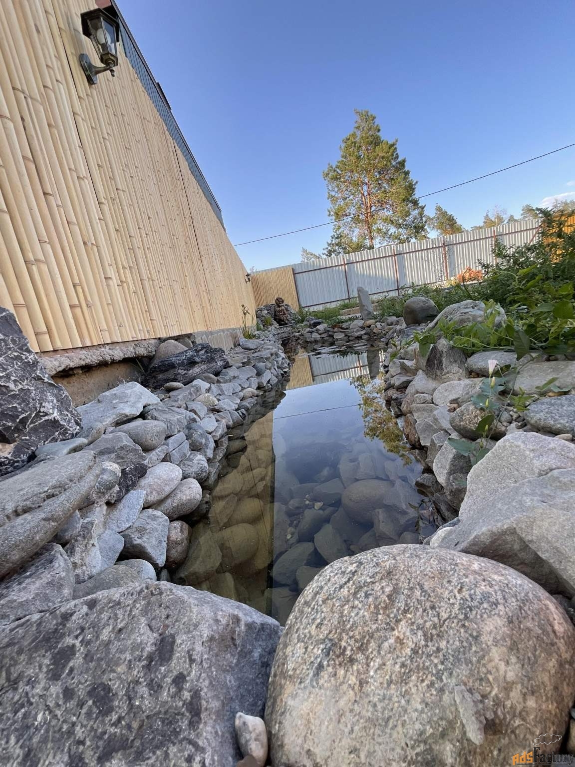 Уютный пруд с живыми рыбками прямо на участке (насос и фильтра в отдельном люке)