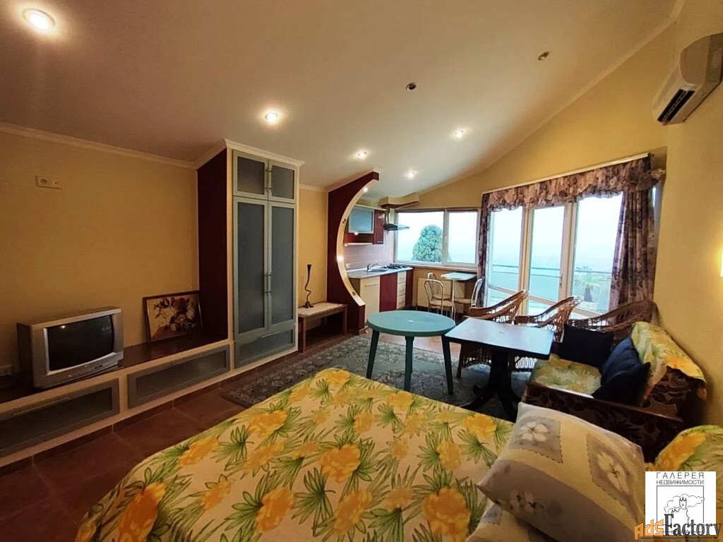 • «Фишка» объекта: Большая панорамная терраса на мансарде и балконы с видом на море — то, за что туристы платят больше.