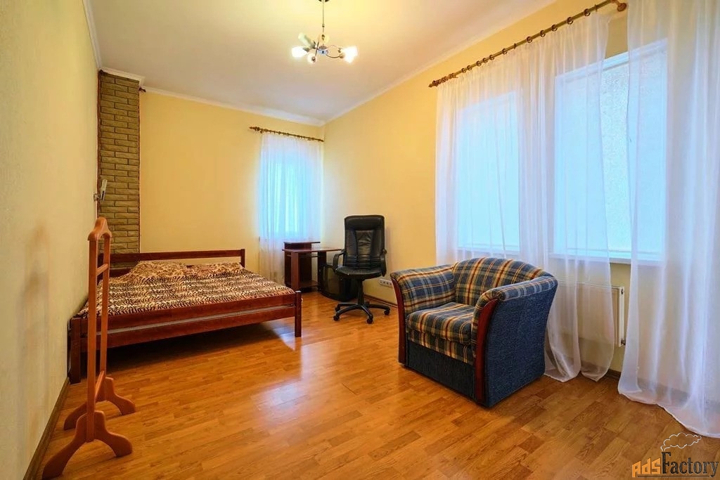 На 1-ом этаже дома расположены кухня, столовая, холл с действующим дровяным камином, гостиная, совмещенный санузел, котельная и кладовая.