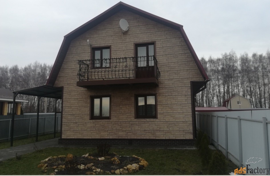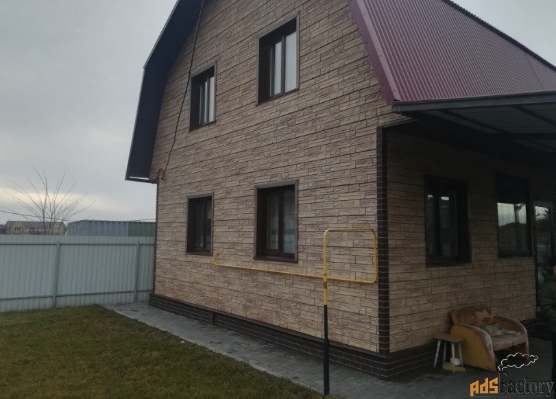 Дом построен в 2016 году и подходит для круглогодичного проживания. Общая площадь составляет 115 квадратных метров, из них жилая площадь — 65 квадратных метров. Площадь кухни — 10 квадратных метров. В доме четыре комнаты площадью 20/15/15/15 кв. м. Высота потолков — 3 метра. Сделан евроремонт. Дом двухэтажный, что позволяет эффективно использовать пространство. Подведён газ, электричество, водоснабжение (скважина), канализация. Участок 10 соток имеет статус личного подсобного хозяйства. Есть асфальтированный подъезд к участку. На участке расположена баня с комнатой отдыха и терассой.