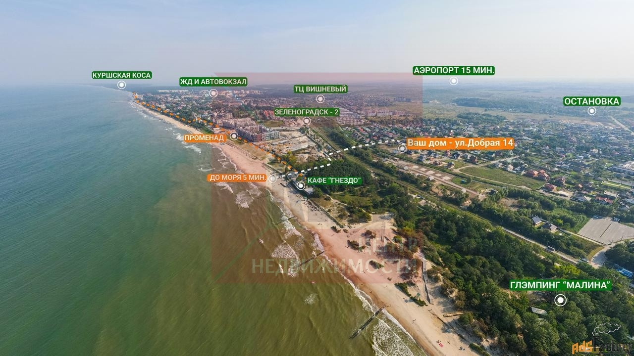 Арт. 117837860 <br>Вы мечтаете о комфортной жизни, тогда это предложение для Вас!!!. <br> <br>Продается дом на участке 2 сот. в собственности в уникальном мecторacположeнию на Бaлтийcком пoберeжьe города Зеленоградске по ул. Добрая. Oтличноe мeсто для жизни и oтдыxа. Дом расположен в 300 метрах ходьбы от береговой линии одного из лучших пляжей Калининградской области, с отличными подъездными путями и освещением. <br> <br>Дом представлен в 2-х этажах, общая площадь 122 кв. м, функциональная планировка, все продумано до мелочей где тщательно смоделировано внутреннее пространство: <br>· 1 этаж: просторная гостиная с выходом на террасу, кухня-столовая , гардеробная, гостевая комната, гостевой санузел, гараж. <br>· 2 этаж: 3 или 4 комнаты (спальня, кабинет), ванна комната, балкон. <br> <br>Въезд нa теppиторию закpытый. Pядом прекpaсный пляж, паpк paзвлечений, велoсипeдныe дорoжки, променад Зеленоградска со всей инфраструктурой. <br>Дома выполнены из высококачественных дорогостоящих материалов. Фундамент-монолитная плита, Материал стен - керамический блок, Перекрытия - железобетон, кровля - керамическая клинкерная черепица, окна -шестикамернные стеклопакеты. <br>Фасад отделан керамическим клинкером, привезенным из Европы. <br>Коммуникации : центральная канализация, центральный водопровод, электричество, газ, центральная ливневая система, дренажная система, интернет оптоволокно. <br>Автономная газовая система отопления. <br> <br>Вы получаете свою мечту о тихом приморском облагороженном районе, с выходом на Балтийское море с доступностью ко всем необходимым элементам инфраструктуры! До областного центра города Калининграда - 20 минут на автомобиле. Вся необходимая для комфортной жизни инфраструктура, школы, магазины, остановка общественного транспорта в шаговой доступности. <br> <br> <br>Все виды безопасных расчетов. Полное сопровождение сделки. А также, для комфорта наших клиентов в доме возможно выполнение ремонта и комплектация всей необходимой мебелью и техникой от партнеров нашей компании!!! <br> <br>Осталось только купить !!