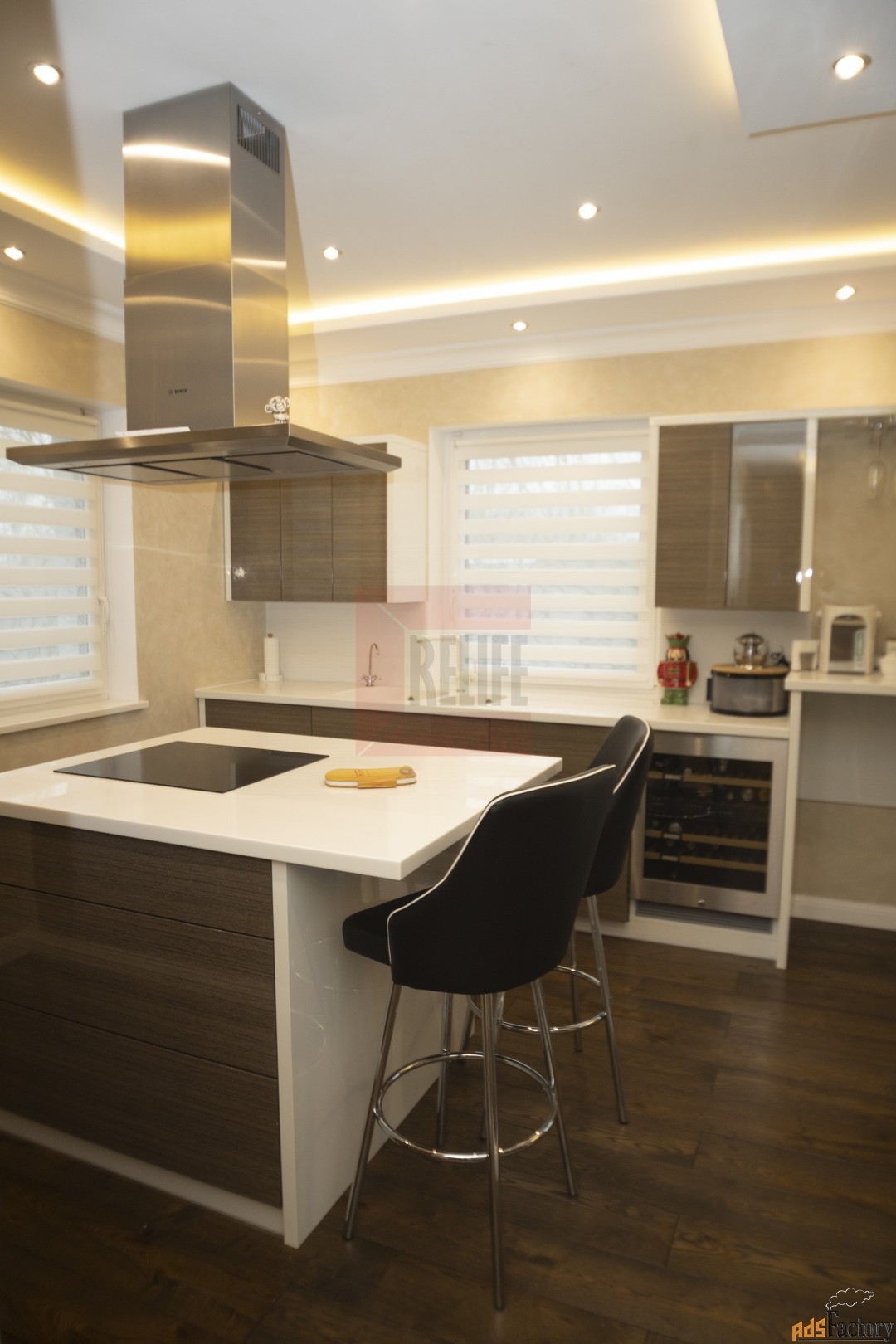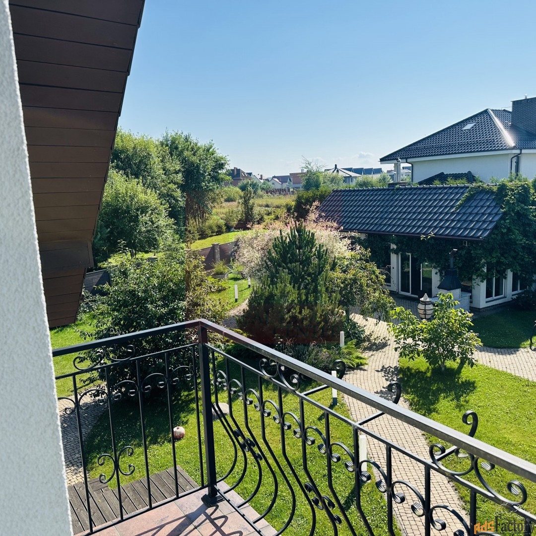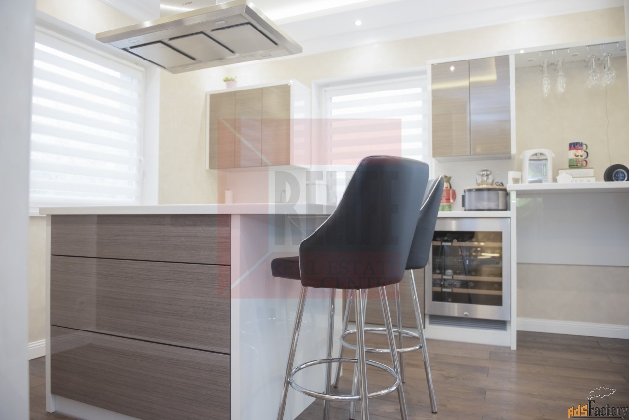 Арт. 111957218 <br>Цена: 159 000 000 руб. <br>Дом, площадью 289,2 кв. (в собственности), на участке 14,02 соток (ИЖС в собственности) <br> <br>Фактическое проживание с февраля 2021 года. <br>Расположен у западного пляжа города Зеленоградска, на второй курортной линии, поселок «Малиновка». Развивающийся район малоэтажной застройки. <br> <br>Пешая доступность до моря, 5-7 минут . До центра Зеленоградска и вокзала 7 минут на машине. <br>До аэропорта «Храброво» 15 минут на машине. До Калининграда 20-25 минут на машине. <br>До ближайшего магазина «SPAR» 5 минут на машине. <br> <br>Дом построен по проекту архитектурно-строительной компании «Archon». Проект гармоничного односемейного дома с мансардой, с впечатляющим экстерьером и функционально продуманным интерьером. <br> <br>Проект называется «Дом в Георгиниях». <br> <br>Здание из керамического блока с утеплением минеральной ватой. Фасад: декоративная штукатурка «шуба». Крыша из натуральной черепицы (Германия). <br>Коммуникации в доме: электричество, газ, скважина, септик, сигнализация, видеонаблюдение, система водоочистки. <br> <br>Функция «умный дом»: газовый котел управляется через телефон по интернет приложению. Постановка дома на охрану и снятие через брелок. 5 камер видеонаблюдения, просмотр в онлайн режиме через интернет приложение (глубина записи до двух недель). Включение и отключение скважины через приложение. Автоматическая блокировка подачи воды датчиками протечки. <br> <br>Внутреннее убранство выполнено по дизайн проекту с авторским надзором, начиная с идеи и заканчивая последним предметом в интерьере. Стены «венецианская» штукатурка, фрески ручной работы и техника «кракелюр». Пол из натуральной паркетной доски (Литва). Лестница из искусственного камня. <br> <br>Первый этаж: кухня-столовая, зал (с действующим камином), гостевая спальня (с выходом на террасу), сан. узел, техническая комната (газовый котел Bosch, накопительный бак на 200 литров, фильтры для воды, сервер видеонаблюдения, стиральная машина), отапливаемый гараж на два автомобиля, с системой хранения велосипедов. <br> <br>Второй этаж: мастер-спальня с отдельным сан. узлом и гардеробной комнатой. Две спальни, каждая с отдельной гардеробной. Сан. узел и постирочная комната. Библиотека. Бельевая, оборудованная гладильной системой. Малая гостевая комната. <br> <br>Мебель, кухонная и бытовая техника премиум-класса. Холодильник LIEBHERR (side-by-side), винный кулер LIEBHERR. Духовой шкаф, микроволновая печь и островная вытяжка фирмы Bosch. Индукционная плита GORENJE. Посудомоечная машина Siemens. Фурнитура кухонного гарнитура BLUM. <br> <br>Мебель в сан. узлах KEUCO. Сантехническое оборудование «Villeroy@Boch», «Hansgrohe», «Kermi», «IRSAP», IDEAL Standart. <br> <br>Телевизоры и саундбары «Sony». Apple TV. Триколор. <br>Мебель из Италии и Финляндии. <br>В интерьере дома присутствуют уникальные дизайнерские элементы. <br> <br>Участок (14,02 сотки): ландшафтный дизайн, ягодные кусты, плодовые деревья. Живая изгородь из вечнозеленых туй (4-5 метра) по границе забора с соседними участками, что дает приватность. <br>Бассейн с подогревом (6х3 м), крытый стеклянным раздвижным павильоном (Albixon), релакс-зона с лежаками. <br> <br>На участке отдельно стоящее здание, выполнено в одном стиле с основным домом. Имеет два помещения: летняя кухня (18 кв.) – мангал, тандыр, газовый барбекю, горячая вода и отдельная комната для хранения садового инвентаря и инструментов (9 кв.), оборудована системой хра