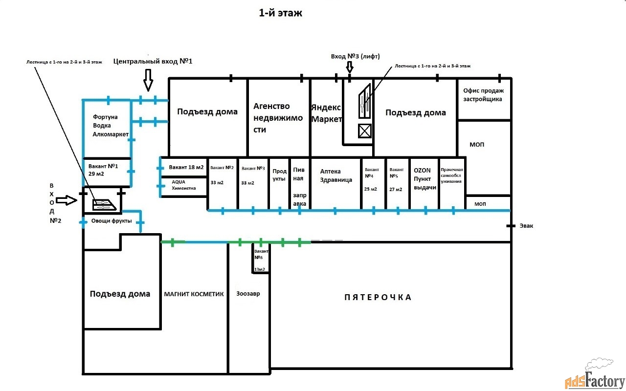 Общая площадь: 1 780,5 м2 (весь первый этаж торгового комплекса)