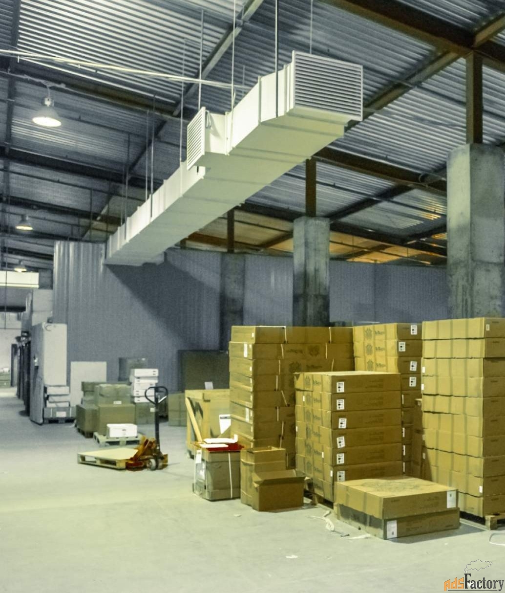 Склад располагается на 2 этаже, высота потолков от 4.2 м, бетонный пол, сетка колонн: 6x9. Также имеются грузовые лифты, грузоподъемность одного лифта 3 тонны. Внутри типовой ремонт, вход в помещение - отдельный с улицы, участок находится в собственности, здание охраняется.
