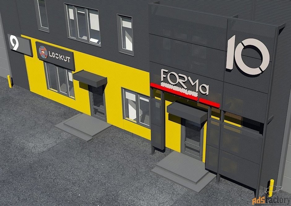 - Въезд: ворота 3х4 м на нулевом уровне, удобный заезд техники и погрузочно-разгрузочные операции; отдельная входная группа для сотрудников и клиентов.