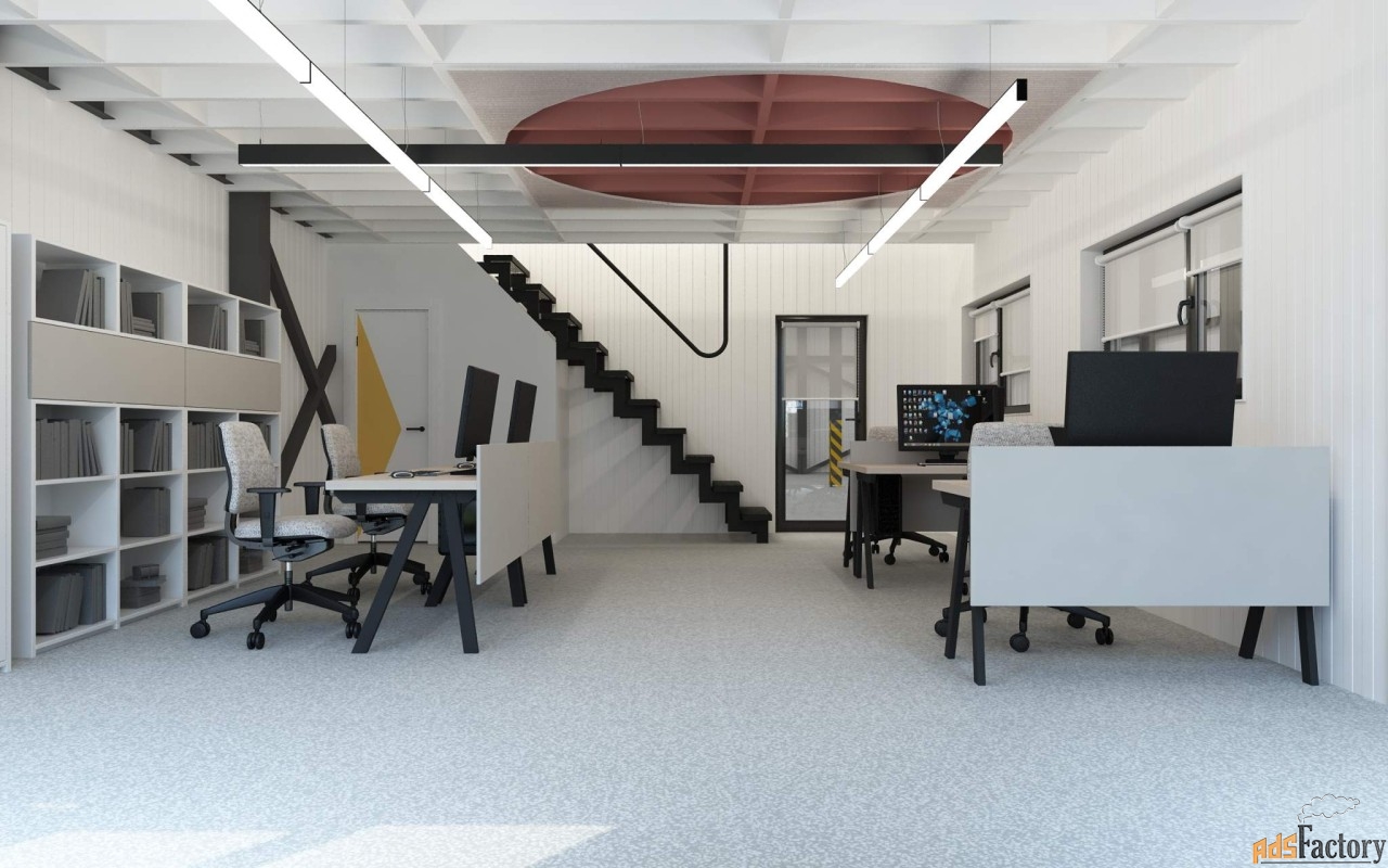 - Въезд: ворота 3х4 м на нулевом уровне, удобный заезд техники и погрузочно-разгрузочные операции; отдельная входная группа для сотрудников и клиентов.