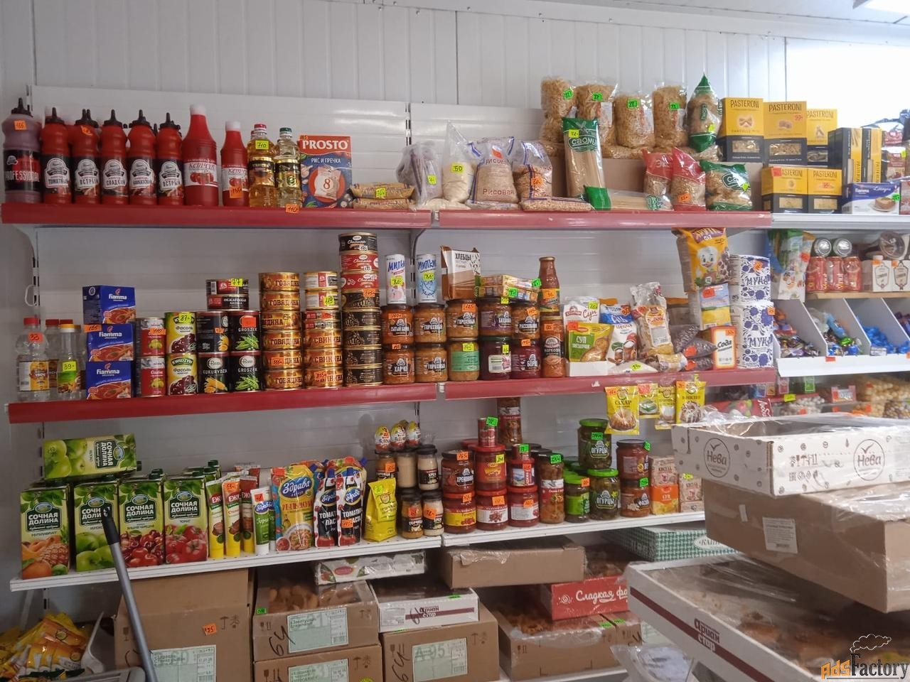 Вместе с помещением остается три холодильные витрины, две морозильные камеры, один холодильник для напитков, стеллажи/горки, сигнализация и кондиционер. [#7550451#]