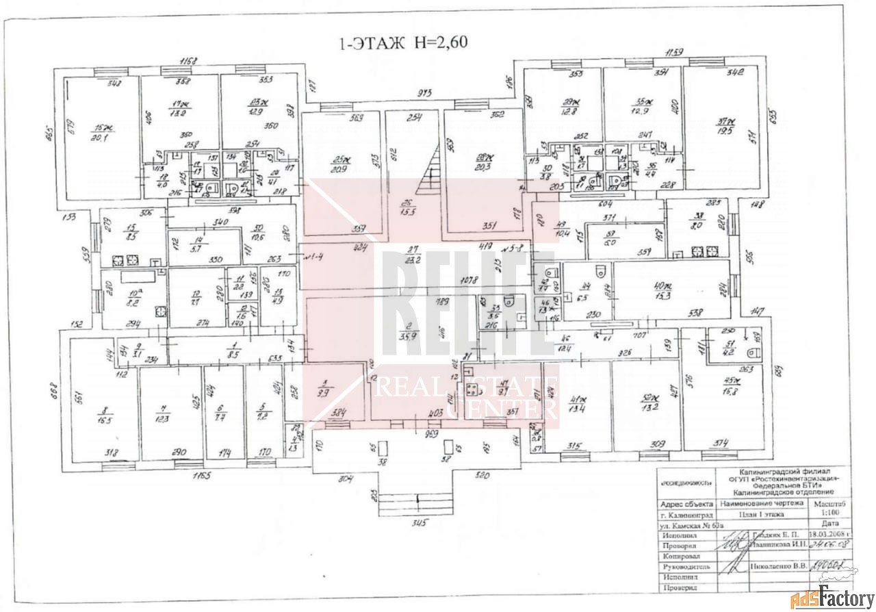 Арт. 101981079 <br>Сдаётся в Аренду Административное отдельно-стоящие здание с Земельным Участком (в собственности) на первой линии улицы Камской. В промышленном, индустриальном районе города Калининград. <br>Общая площадь здания 1391,7 м2 в трёх этажах, возможна надстройка ещё одного этажа, свободная парковка на 40-50 паковочных машино мест. Собственный участок земли 20 соток. Центральное отопление, 30 кВт. (возможно увеличить) , канализация центральная, центральный водопровод. <br>Отлично подойдёт под Офис, Медицинскую, и Учебную деятельность, Хостел, или Гостевой Дом. <br>Отличный вариант под Арендный Бизнес.