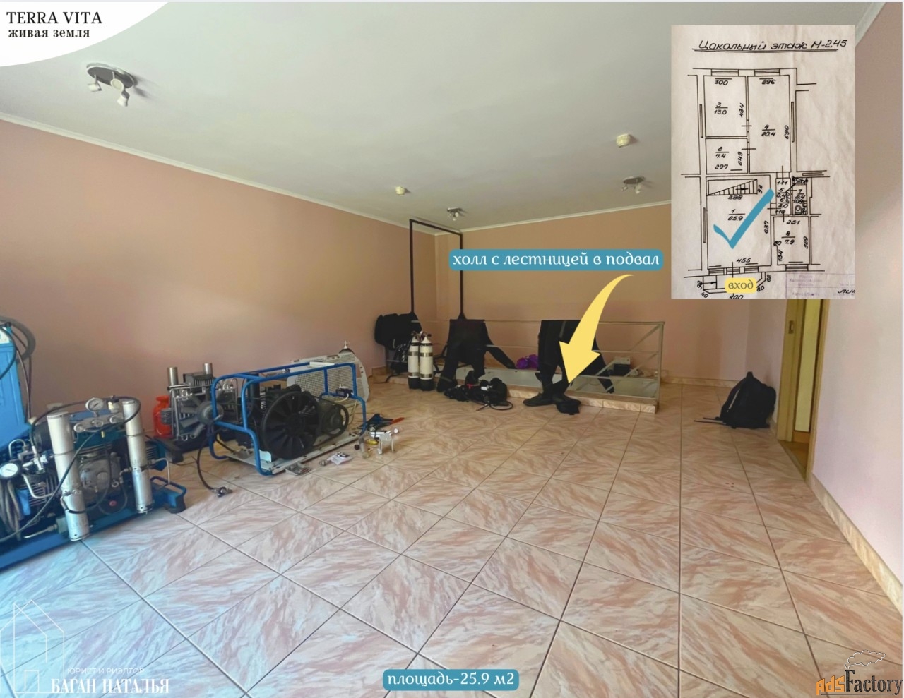 • подвал: есть, без окон, широкая лестница из холла у противоположной стены от входа