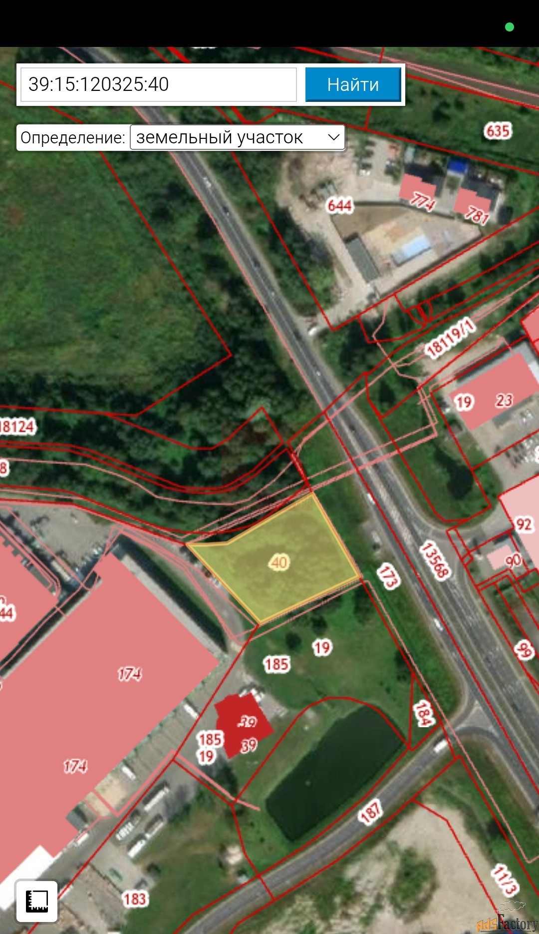 Арт. 108824795 <br>Первая линия от Советского проспекта, вид использования ( склады)зона П4 ,большой список ВРИ 39:15:120325:40 <br>Продаётся Земельный Участок в собственности 27 соток под Коммерческую деятельность. Участок расположен на Первой линии на вьезде в город. Имеется удобный заезд и выезд. По соседству располагается АЗС, автосервис, магазины, что генерит дополнительно высокий трафик. Все коммуникации расположены вблизи участка.