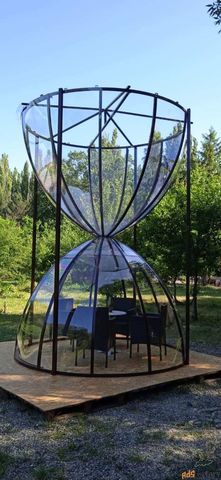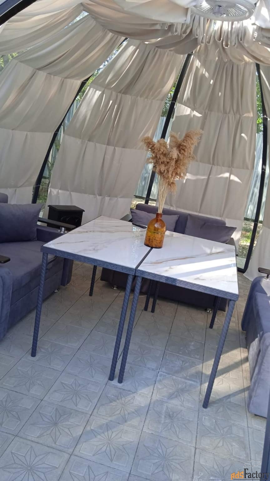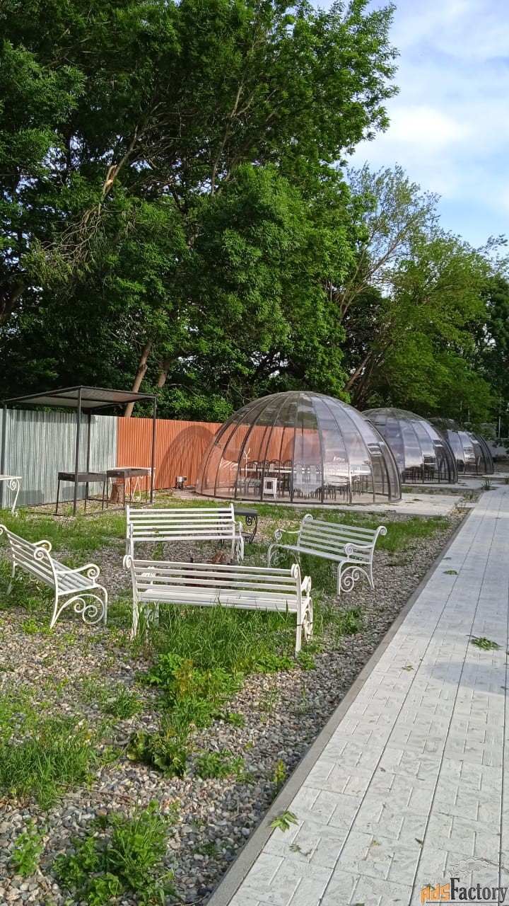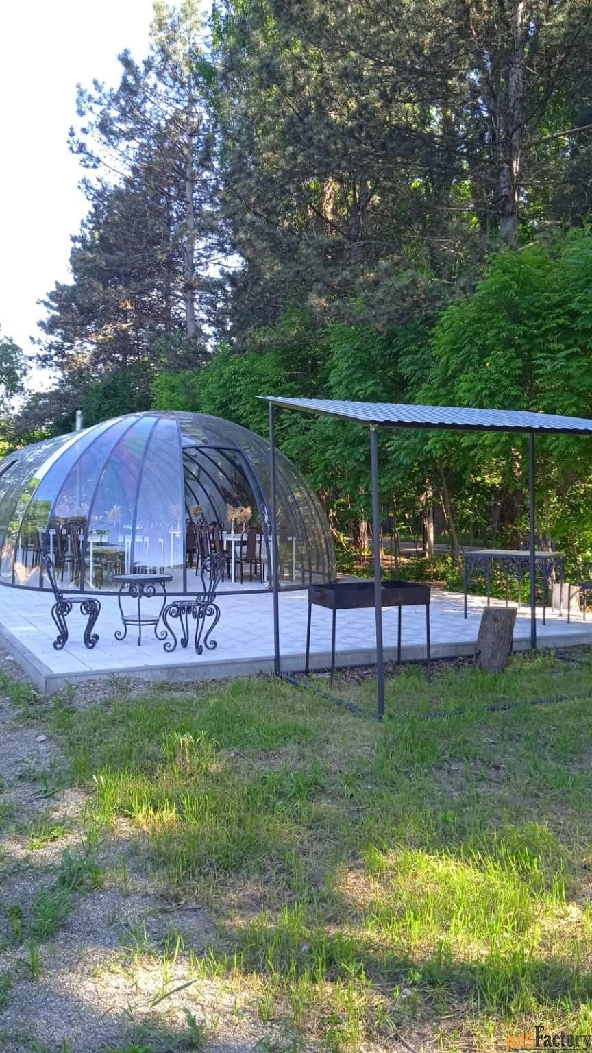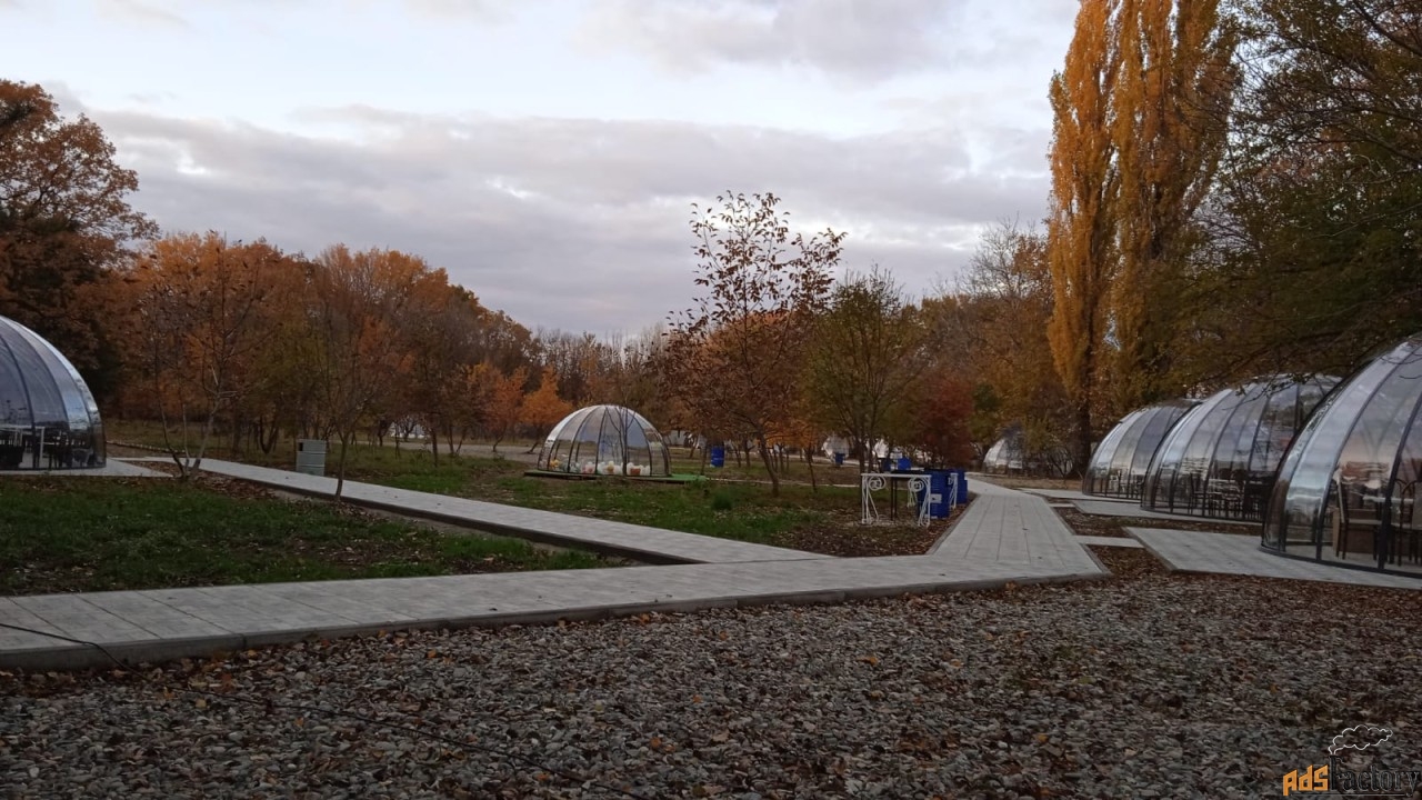 Первая очередь Глемпинг парк с купольными беседками на 200 посадочных мест. На территории 20 купольных беседок диаметром от 4 до 7 метров, вместимостью на 12, 18, 30, 70 человек.