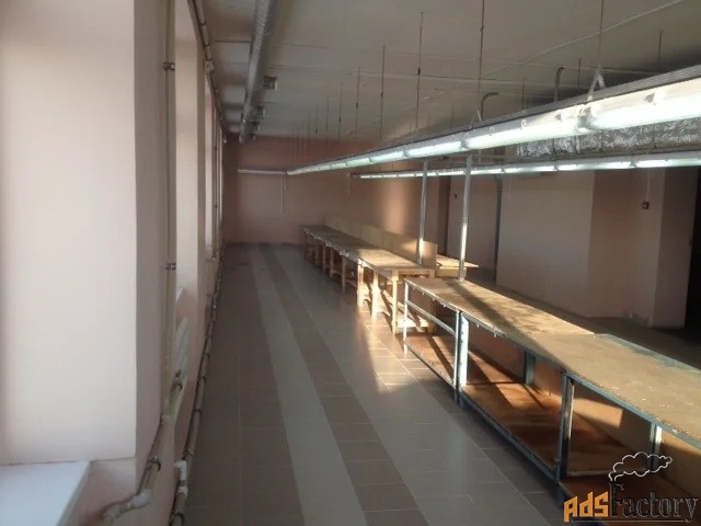 На этаже располагается производственный цех, склад сырья и готoвой пpoдукции, кaбинeт руковoдитeля, помeщение для перcоналa, гpузовой лифт.