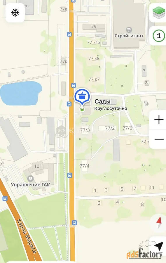 Участок расположен на улице Карла Маркса ( напротив Обл. ГИБДД ) в первой линии направления мкр.района Анатолия Дериглазова