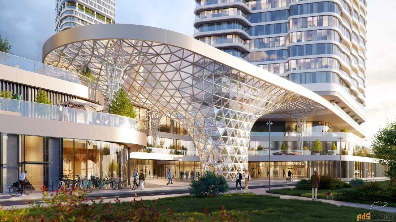 Прямой доступ к пассажирским, грузовому и сервисному лифтам. Бесконтактный вход в здание (телефон/QR/карта) . Подземный паркинг с зарядками для электрокаров, гостевая парковка, веломеста и зона такси.
