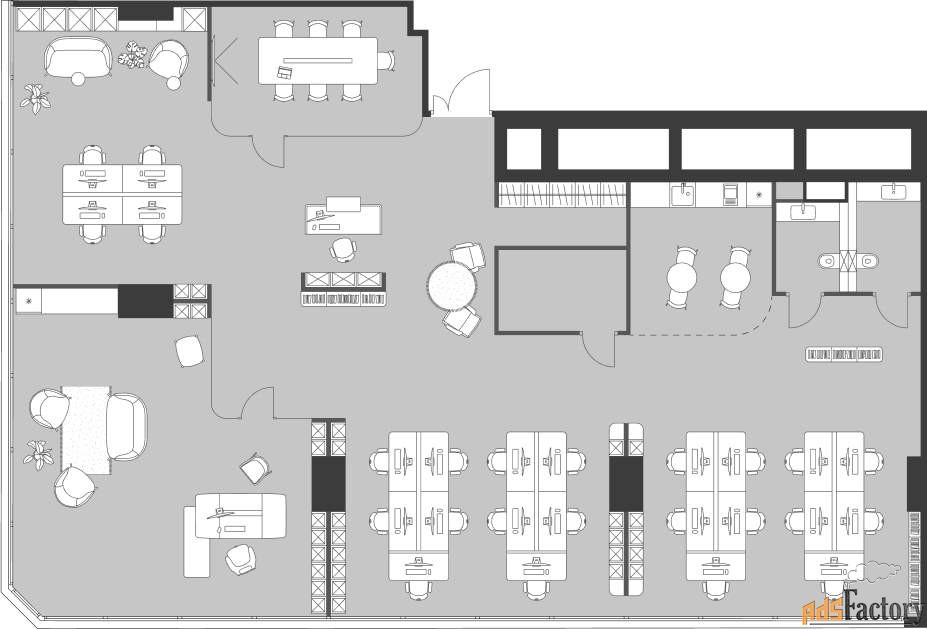 - Пространства без колонн в углах, идеально подходят для руководителей и современных команд.
