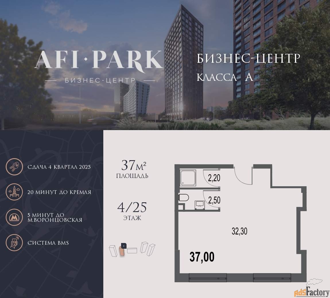 21-этажный бизнес-центр AFI Park - современный бизнес-центр класса A с мультифункциональной экосистемой для бизнеса, панорамным остеклением и эргономичным пространством станет завершающим этапом клубного квартала.