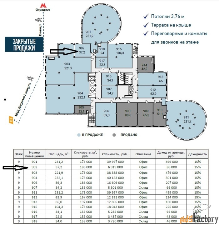 Старт продаж! Вашему вниманию предлагаю от СОБСТВЕННИКА! Офис площадью 37.2 кв. м на 9 этаже в НОВОМ МНОГОФУНЦИОНАЛЬНОМ КОМПЛЕКСЕ индустриального типа — ГАЛО! Расположенный: по адресу. Алтуфьевское шоссе д. 35 к 1. Общая площадь объекта составляет 21 858 кв. м. Комбинация производственных, складских и офисных пространств обеспеченная необходимой инфраструктурой на одном этаже позволяет быстро реагировать на изменения рынка и потребности клиентов. В Гало каждый найдёт себе подходящее место! 10-этажное здание с продуманной системой логистики. Авто рампы с двух сторон для доступа транспорта на все этажи индустриального блока. Два грузовых бокса на уровне пола. Развитая инфраструктура для сотрудников: душевые, переговорные, комнаты для звонков. Универсальность пространства обеспечивается сочетанием производственных, складских и офисных площадей на одном этаже, что позволяет оперативно адаптироваться к рыночным изменениям. Проект предусматривает комфортную зеленую зону вокруг центра, дополненную новыми подъездами и паковочными местами. На крыше здания дополнительные пространства для отдыха и работы резидентов, что позволит наслаждаться видами на ВДНХ и Москва-Сити. Для удобства сотрудников в здании есть подземный паркинг с местами для мототранспорта и электрозарядные станции. Новый формат, способный удовлетворить потребности современного бизнеса в городской среде. Цены на этапе старте продаж. Специальные условия финансирования и рассрочка на покупку для инвесторов. Выгодная Рассрочка под 0% до двух лет.