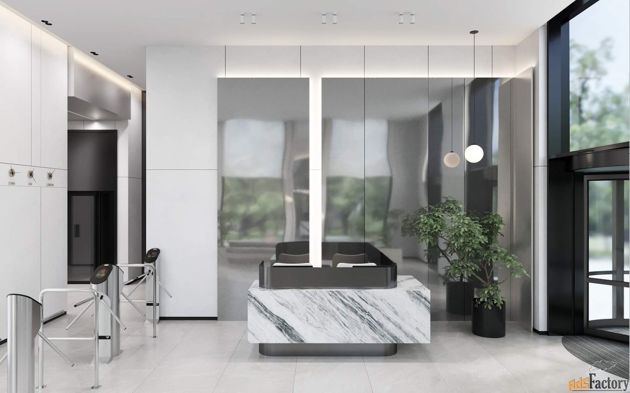 На первом этаже здания - лобби с комфортной зоной ожидания, кофе-поинтами и банкоматами, ресторан и торговая зона. Со второго этажа располагаются офисные помещения, формат которых предусматривает «нарезку» по желанию арендатора.