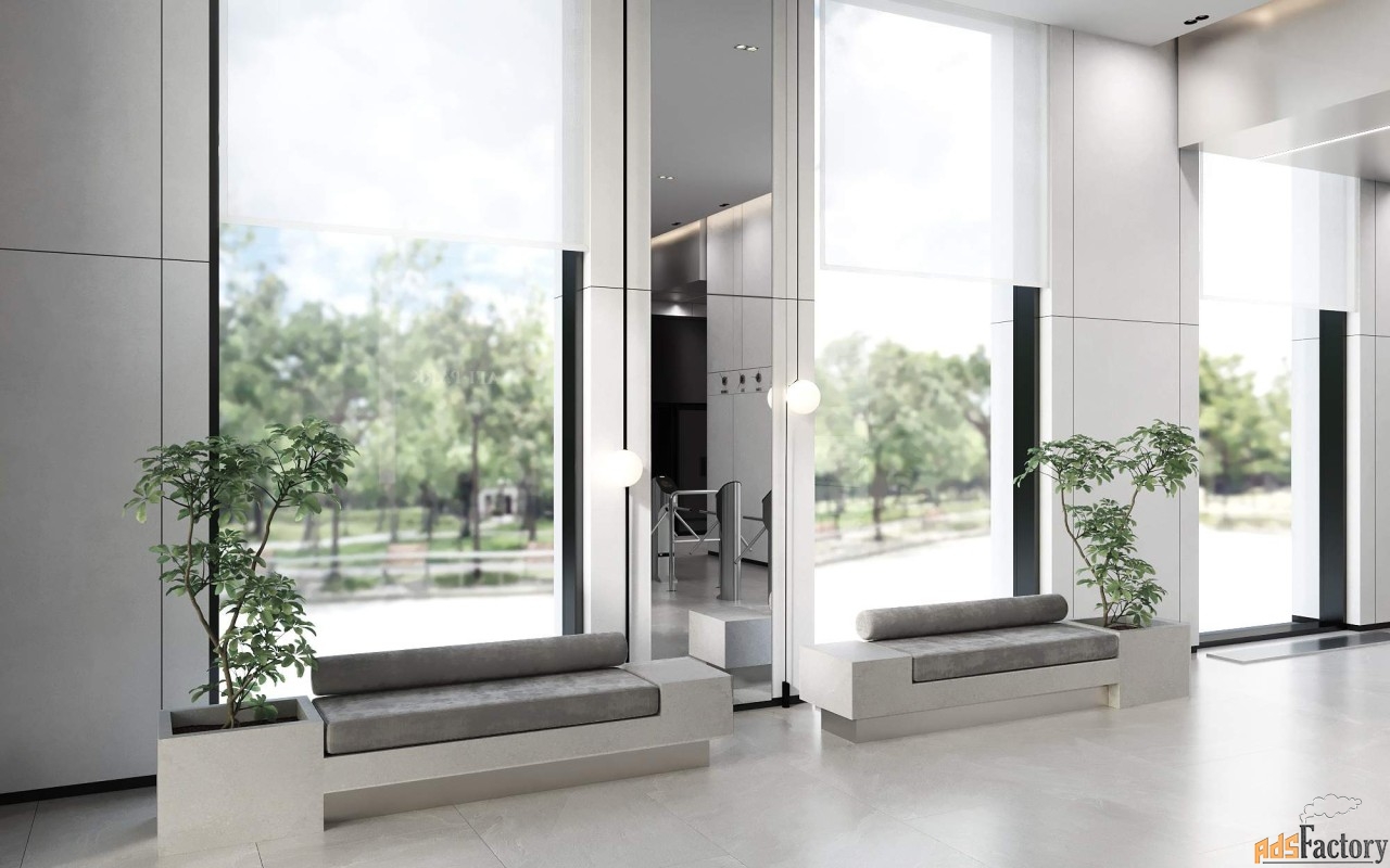 Воронцовский парк, а высокие потолки и остекление «в пол» наполняют офисное пространство дополнительным воздухом и светом. Инфраструктура бизнес-центра создана с учетом ежедневных потребностей офисных резидентов. У входа расположена зона для посадки в такси и 11 гостевых машино-мест. В подземной части находится паркинг на 44 машино- места. На первом этаже - лобби с комфортной зоной ожиданий, кофе-поинтами и банкоматами, ресторан и торговое пространство с сервисами быта.