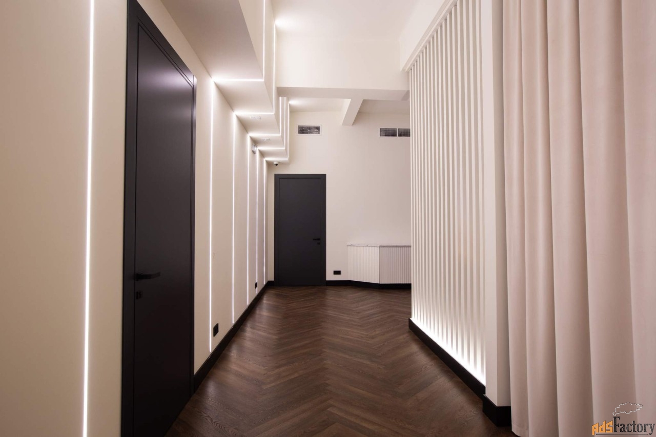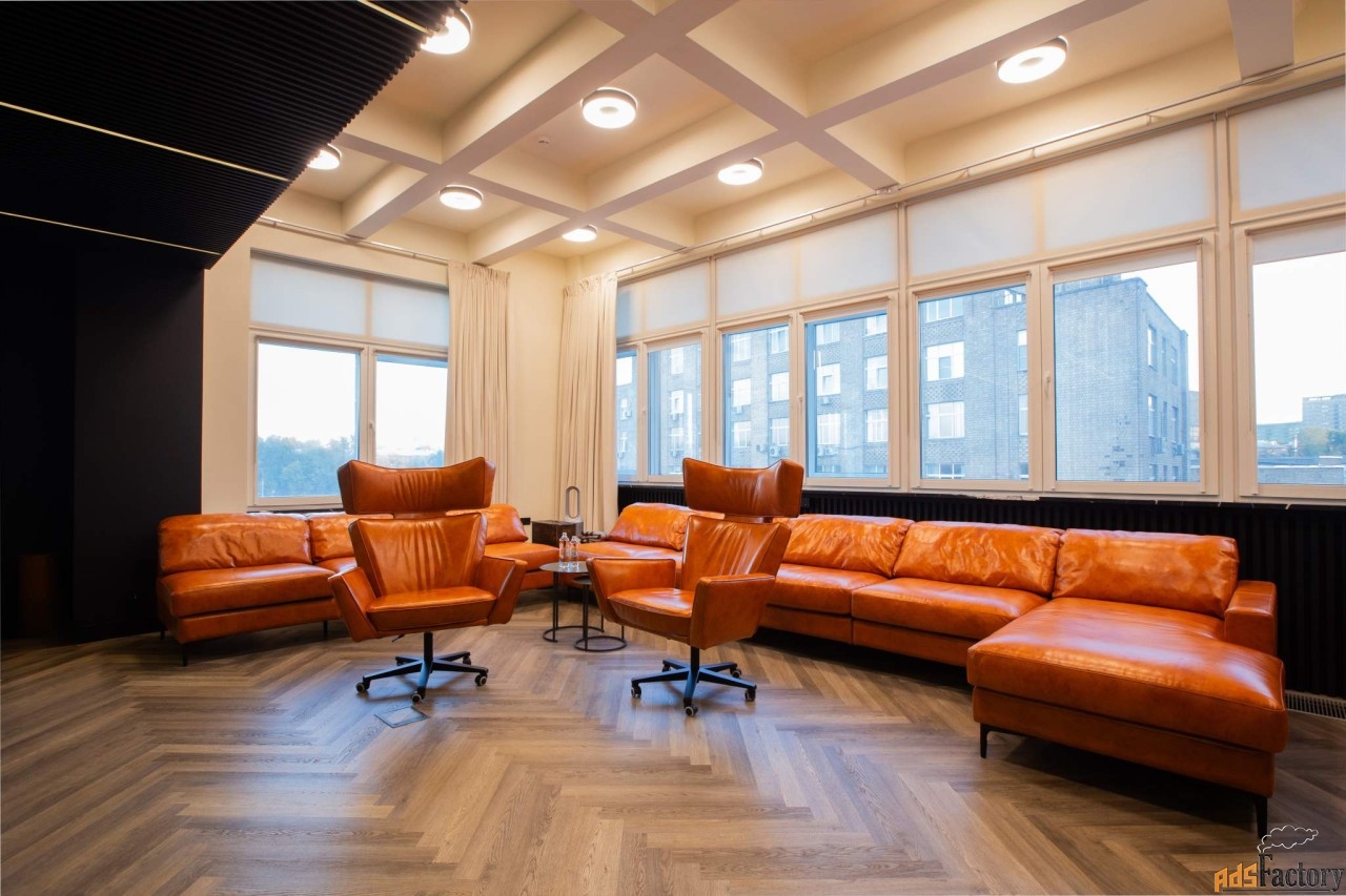 Дизайнерский ремонт: офис оформлен по индивидуальному проекту с использованием премиум-материалов.
