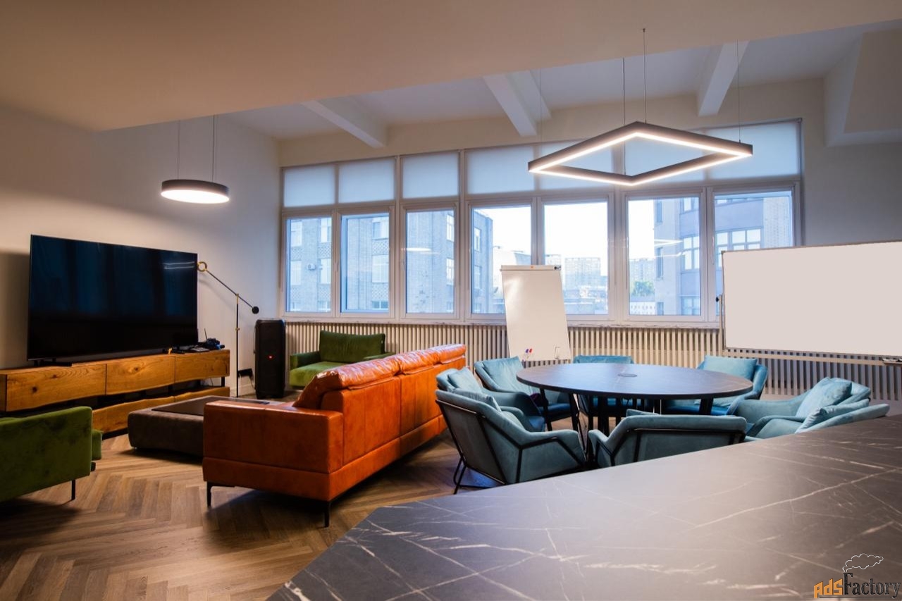 - большая кухня/event-пространство для корпоративных обедов и организаций мероприятий!