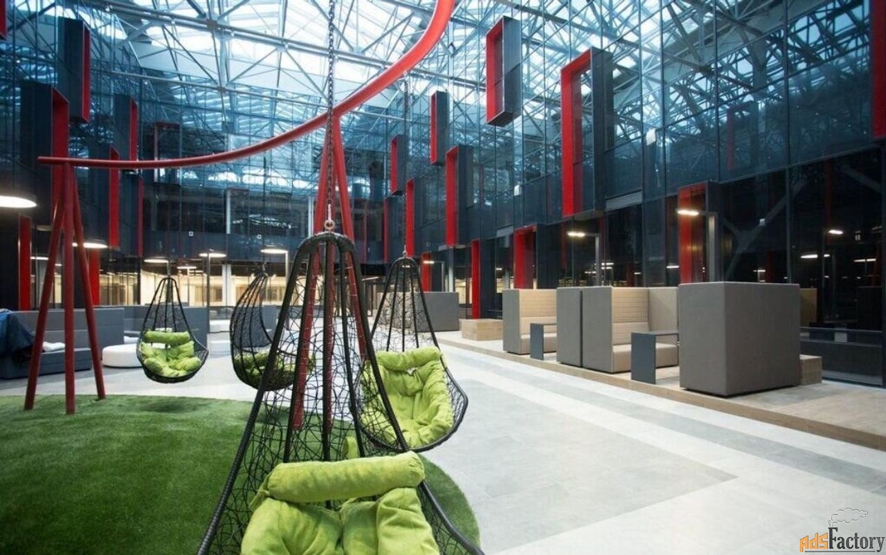 Уникальная фишка: 8 дизайнерских атриумов с 8-метровыми потолками, зонами для работы и общения. В одном из атриумов — профессиональный теннисный корт!