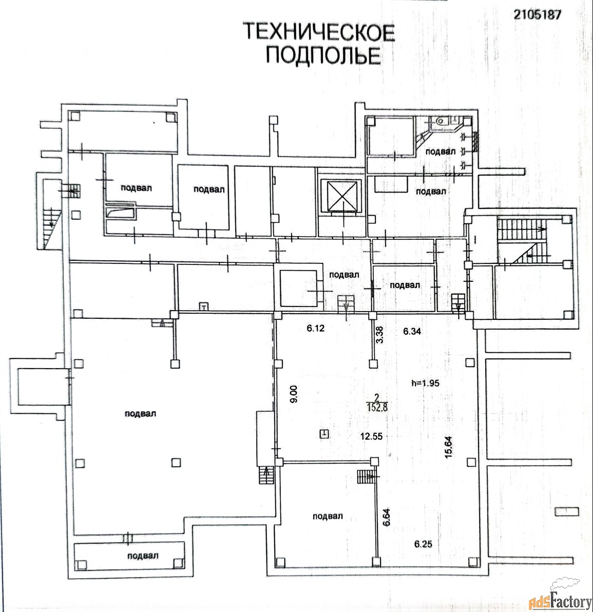- Техподполье: 152 м2, высота потолков 1,95 м.