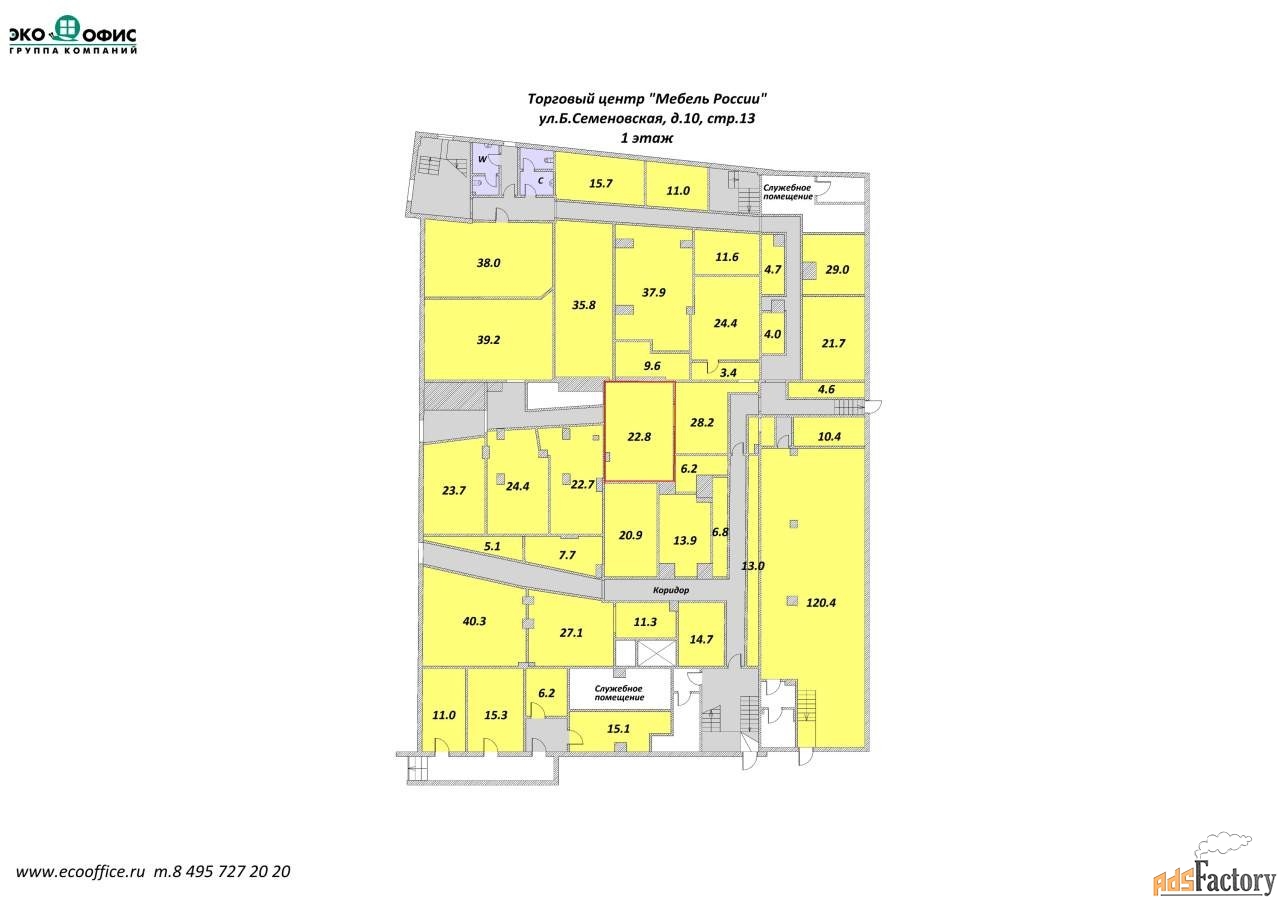 Сдаем в аренду площадь свободного назначения 22.8 кв. м. , в ТЦ «Мебель», 2 мин. м. Электрозаводская, вблизи ТТК и Садового кольца.