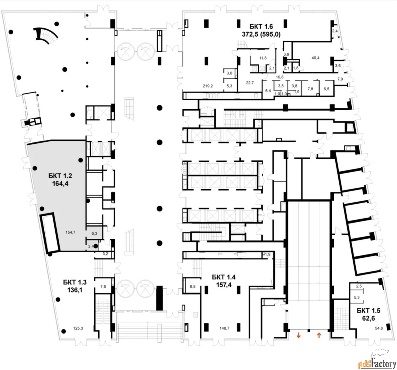 5 лифтовых групп (в том числе 17 грузопассажирских лифтов)