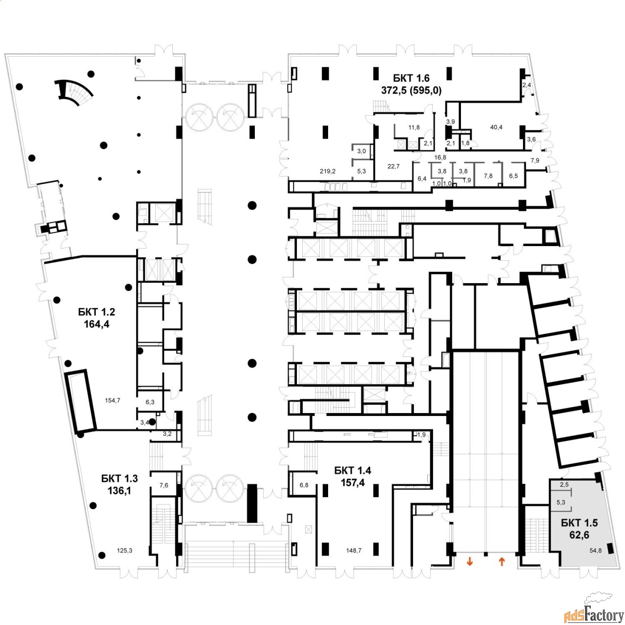 5 лифтовых групп (в том числе 17 грузопассажирских лифтов)