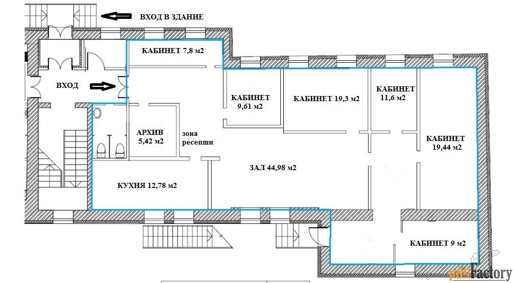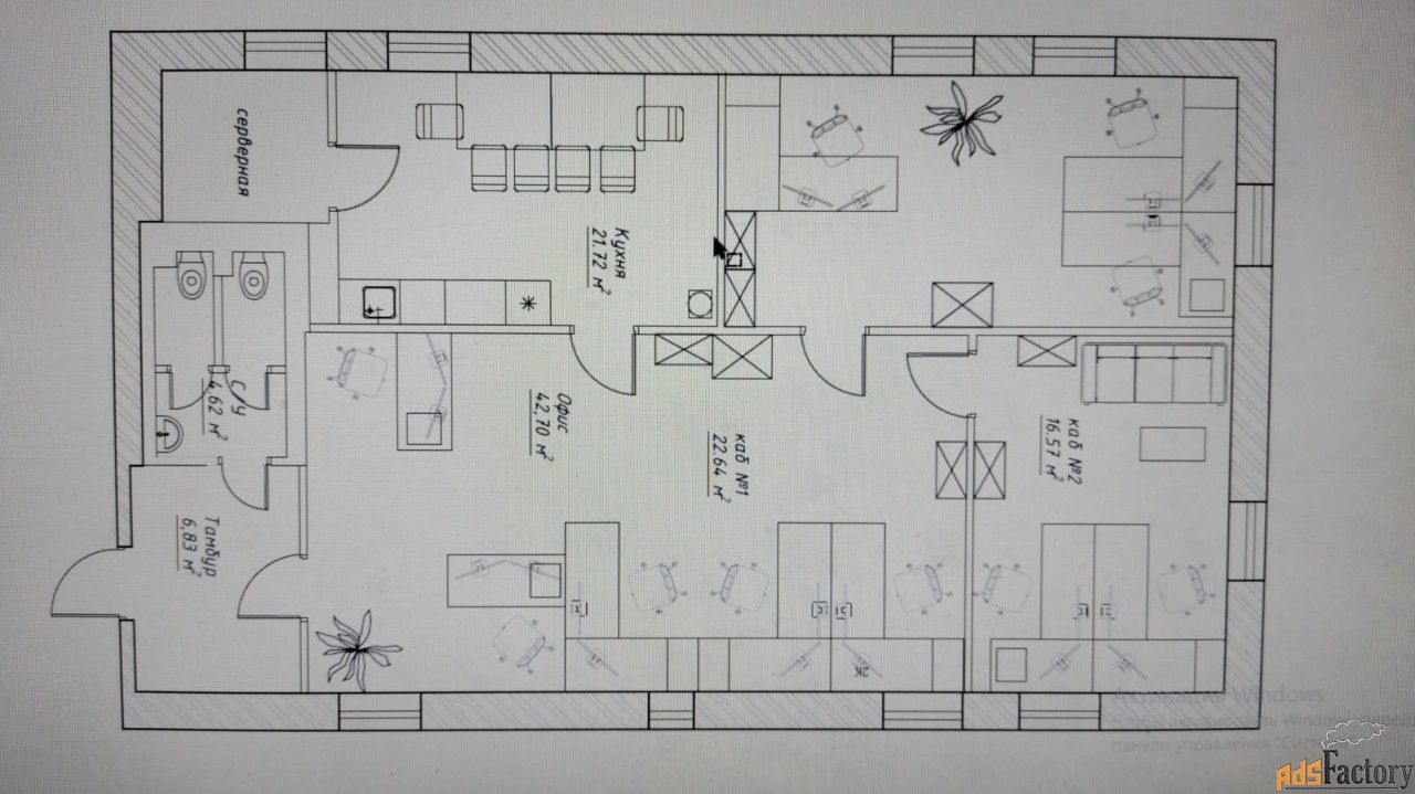 Высота потолков 3,30 м. Достаточное кол-во окон. Кондиционирование, свежий ремонт.