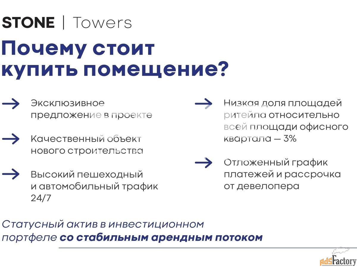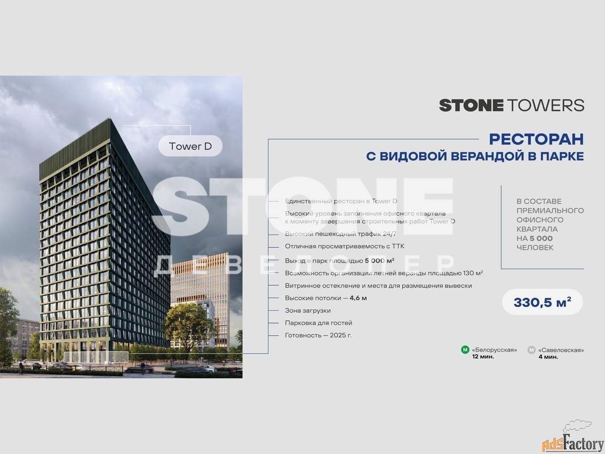 STONE - девелопер коммерческой и жилой недвижимости классов бизнес+ и премиум в Москве. С 2022 года занимает лидирующую позицию на офисном рынке (рейтинг РБК) . За 18 лет компания вывела на рынок более 40 проектов. Компания имеет самый масштабный проектный портфель офисной недвижимости класса А на московском рынке (данные NF Group) и возглавляет топ-6 устойчивых девелоперов, согласно исследованию FResearch (Forbes) .