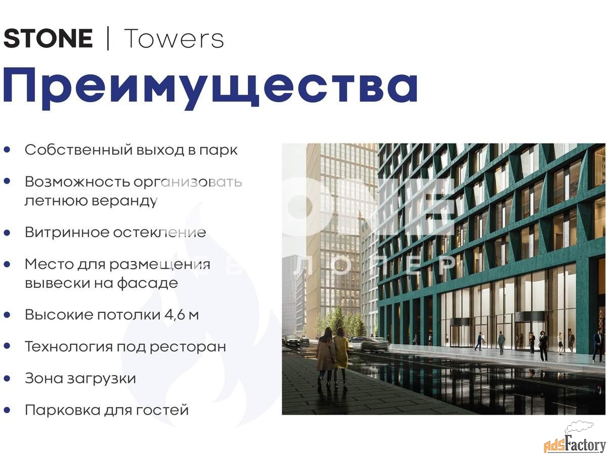 Ресторан - востребованная инфраструктурная составляющая качественного бизнес-центра. Увеличенный трафик за счет сотрудников и гостей бизнес-центра, и жителей района. Благоустроенная территория бизнес-центра станет центром притяжения для горожан.