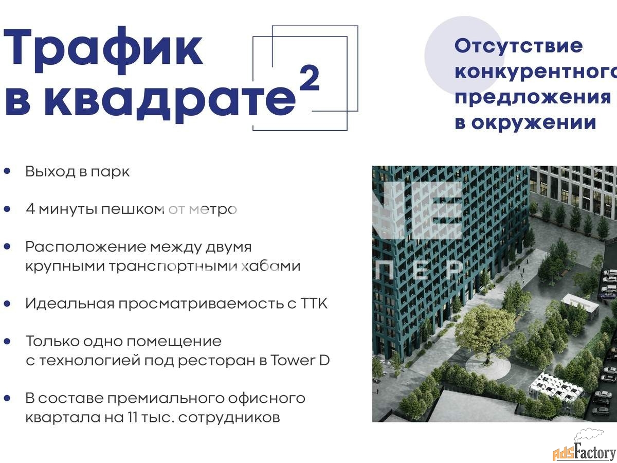 - увеличенный трафик за счет сотрудников и гостей бизнес-центра, жителей района