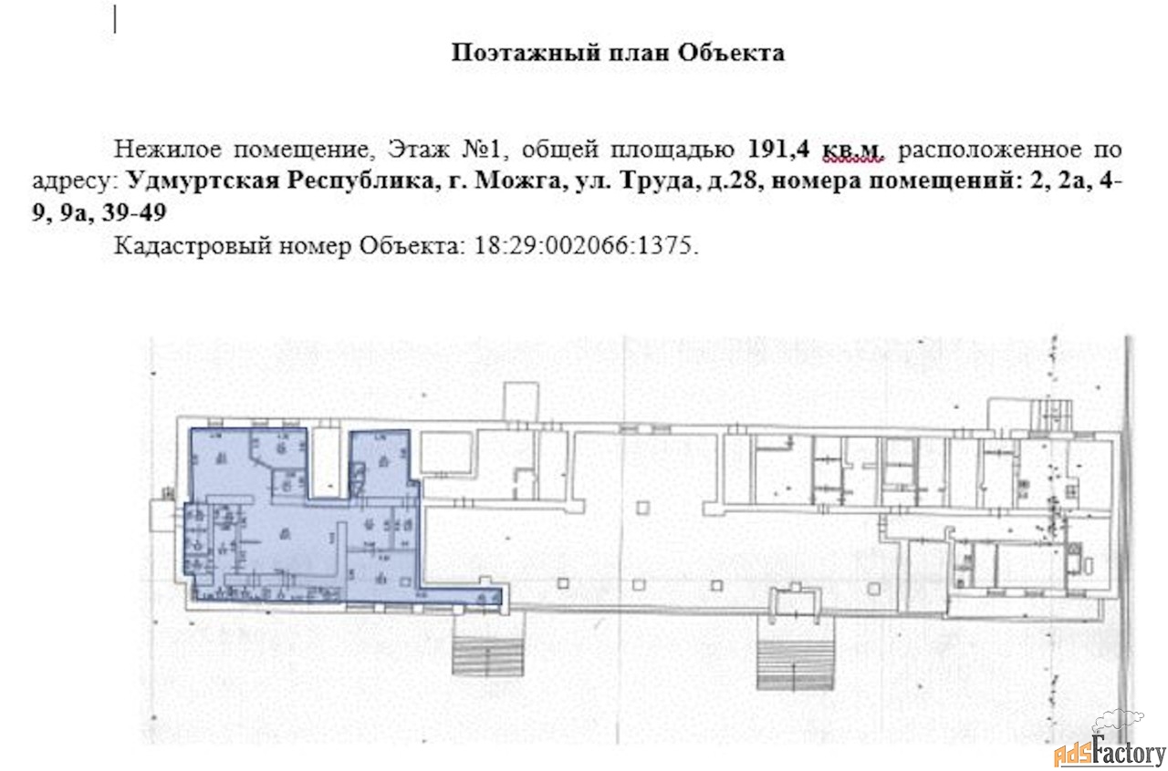 Нежилое помещение общей площадью: 191,4 кв.м.