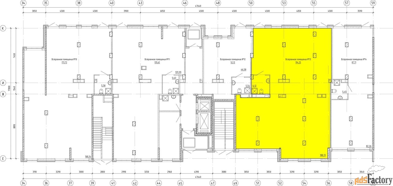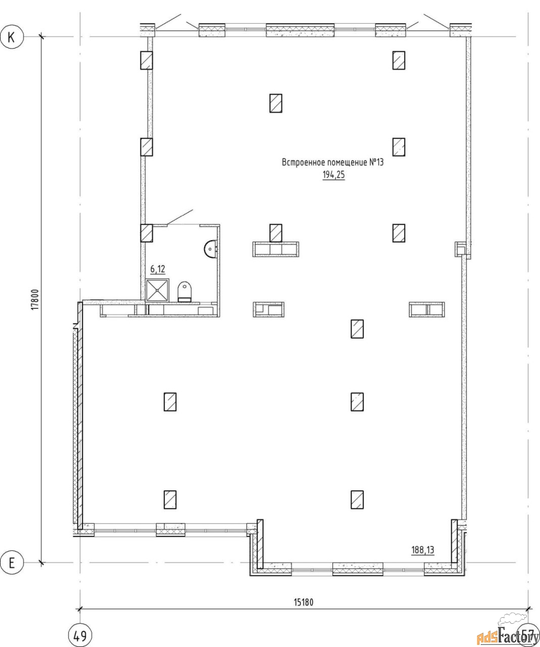 - Открытая планировка. Гибкие возможности кастомизации помещения под ваши задачи.