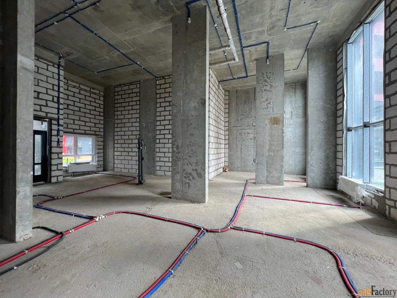 Площадь от 104,8 кв. м до 308,6 м2, корпус №2, первый этаж, 1 вход с улицы, 1 вход со двора. Центральное местоположение, рядом с ТЦ, к помещению есть свободный подъезд и напротив входа есть стихийная парковка. Высота потолков 5,4 м, выделенная мощность - 0,2кВт/ м2, состояние помещения - shell&core. заведены точки подключения к системам вентиляции, гвс/хвс, канализации. В помещении большие витринных окна, предназначено под организацию поликлиники/мед. кабинета, под помещением - тех. этаж+кладовые.