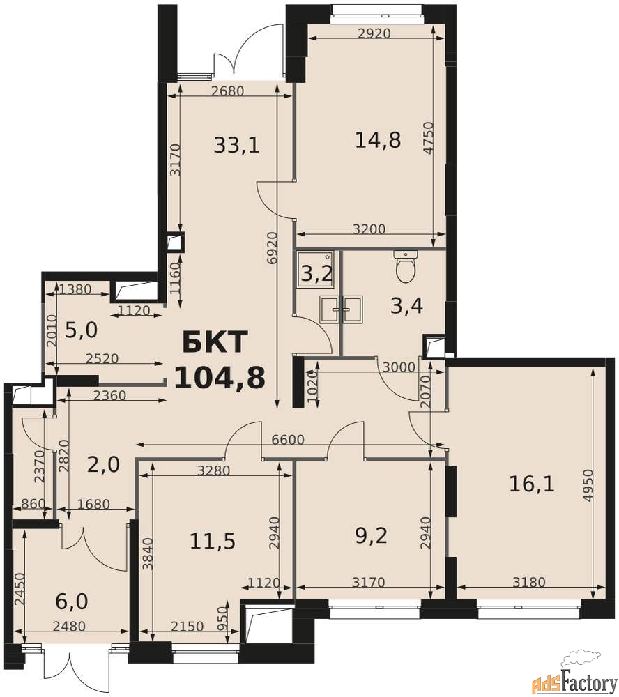 Площадь (м²) | 104.8 |