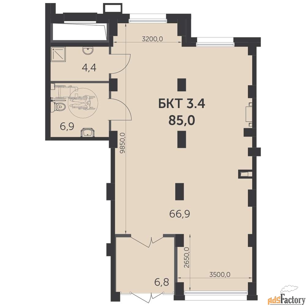 Площадь (м²) | 85 |