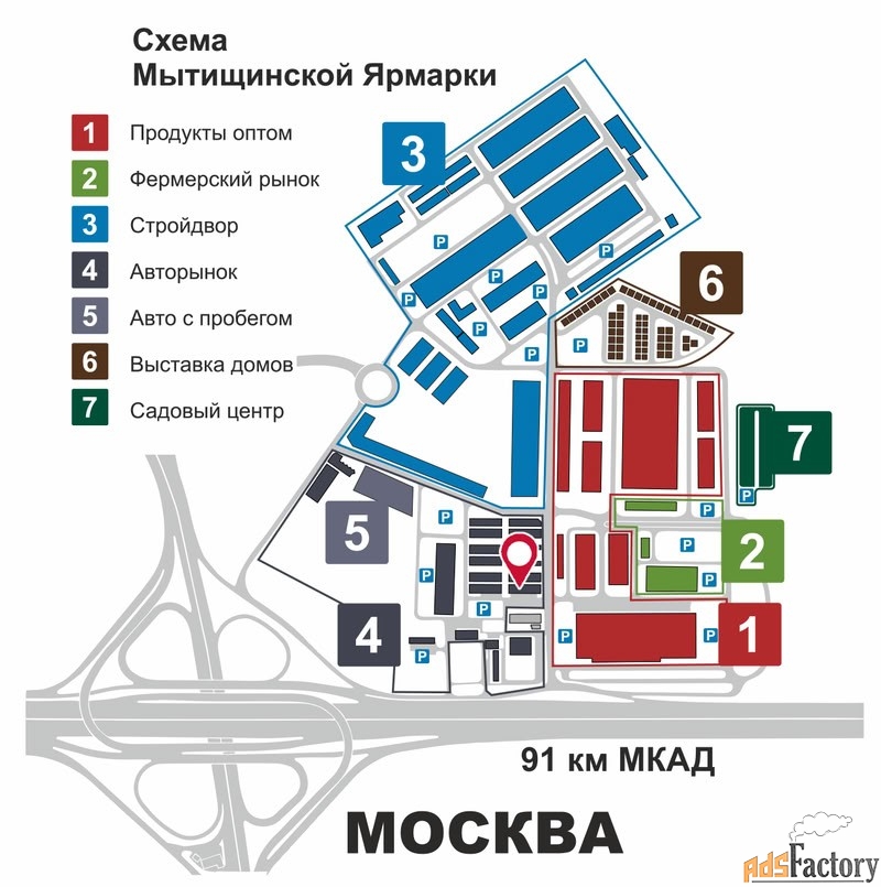 - Кросс-трафик 6 рынков: вы получаете покупателей не только авторынка, но и соседних фермерского рынка, стройдвора, садового центра, выставки домов и оптового рынка.