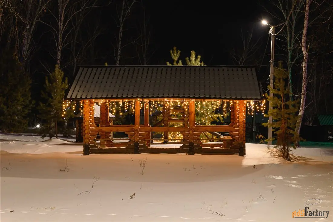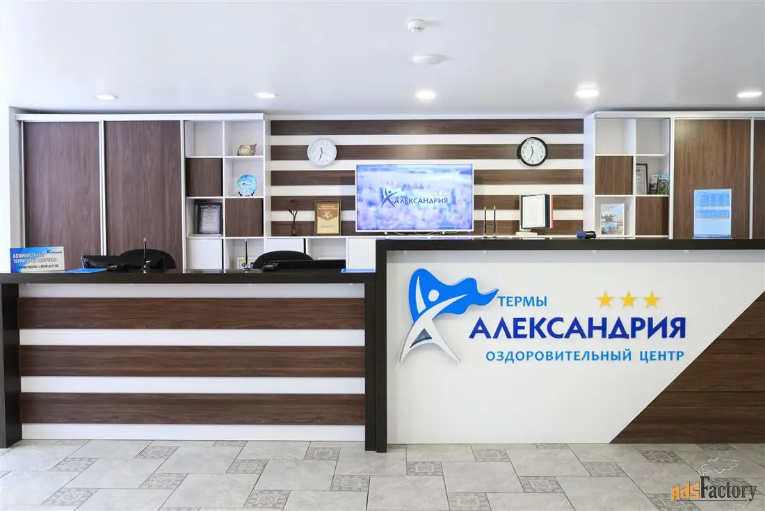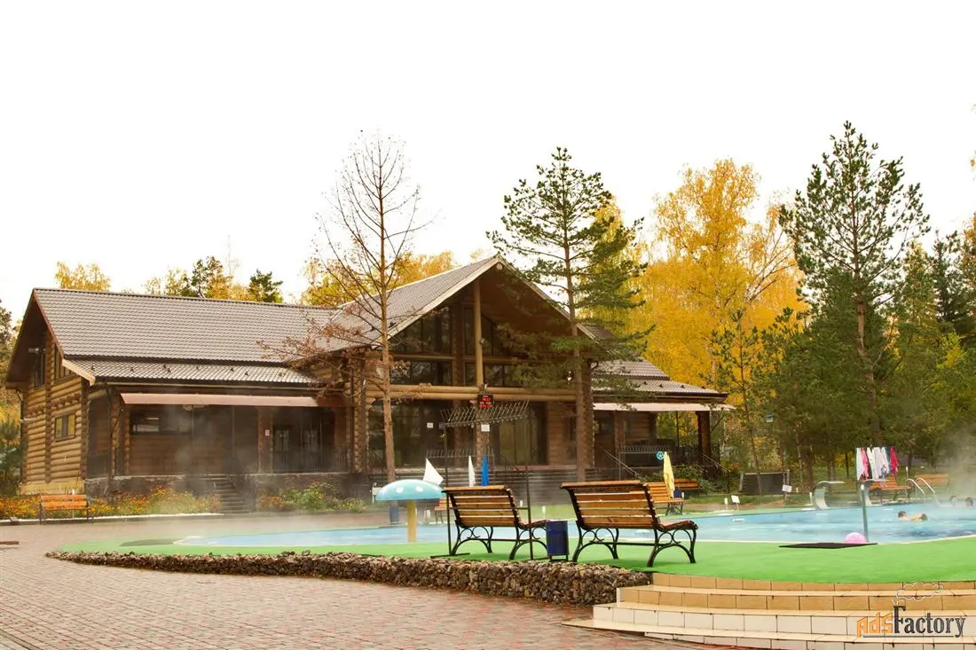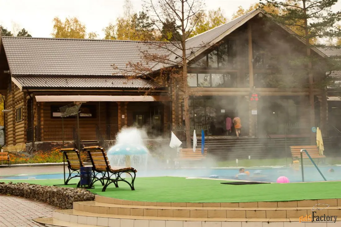 Круглогодичный открытый бассейн с привозной минеральной водой.
