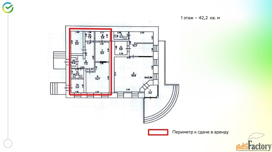 общая площадь: 42,2 м2