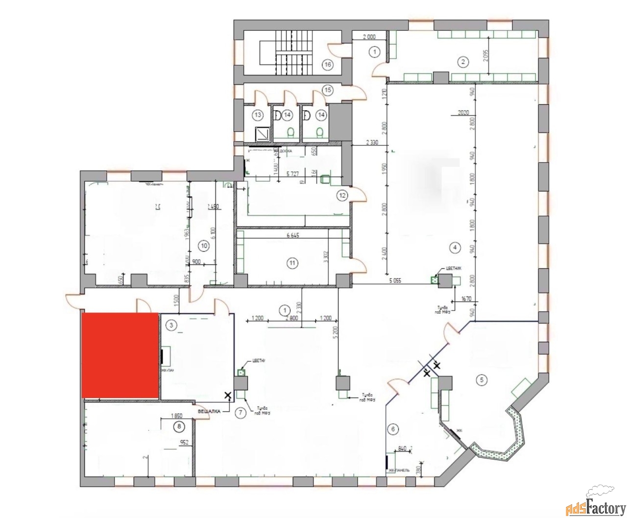 | Площадь (м²) | 555.5 |