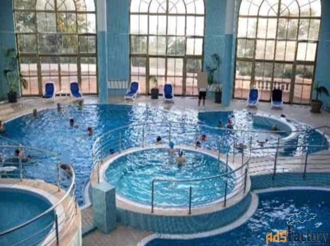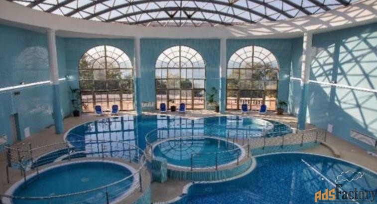 Крытый плавательный бассейн c чистой морской водой, которая ежедневно фильтруется и очищается. Развлекательный комплекс со столовой состоит из 2-х обеденных залов на первом и втором этажах, на 120 и 80 человек.