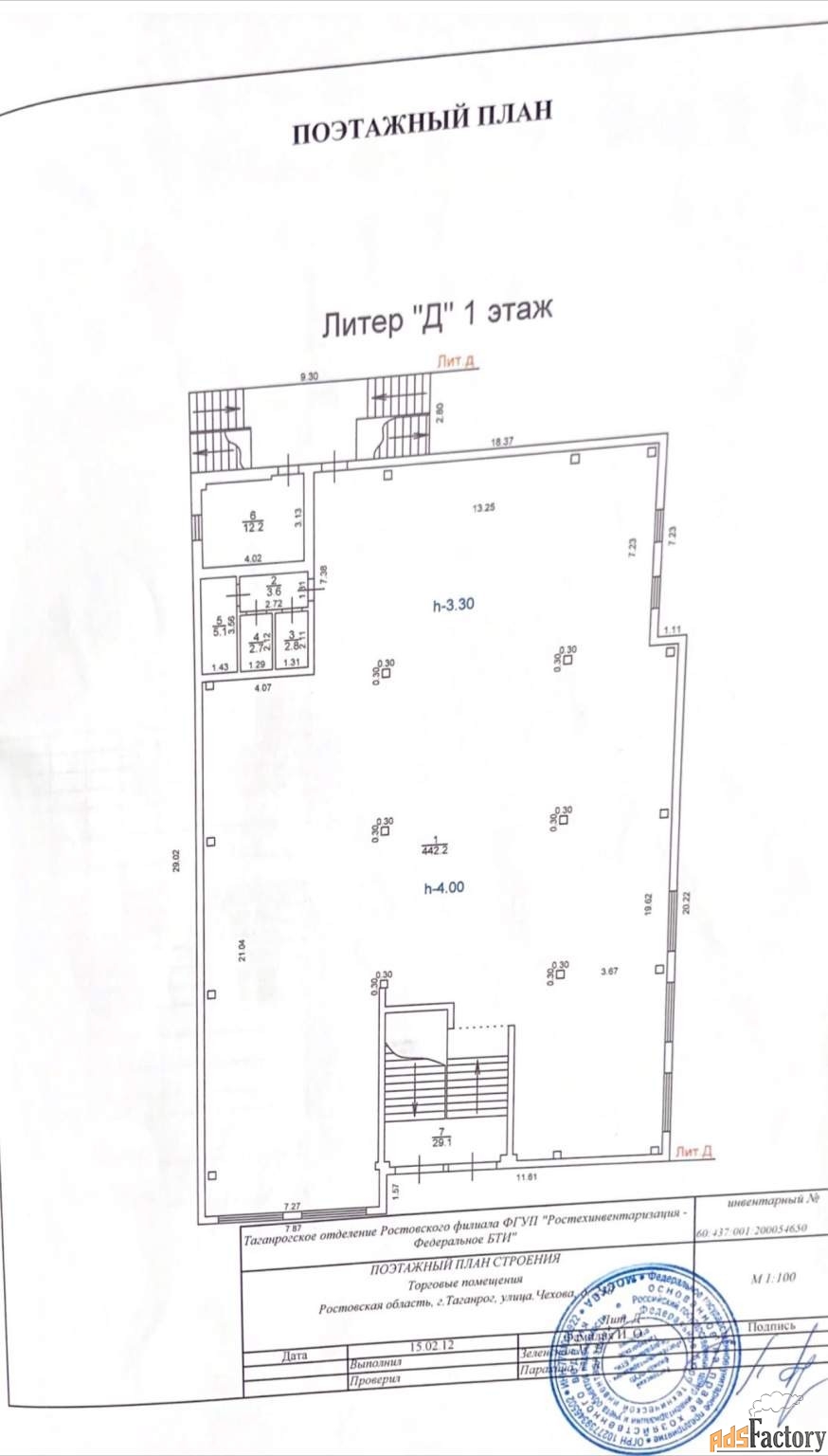 Возможное назначение помещения - коммерция, высота потолков 4 м, внутри типовой ремонт, на полу плитка, тип окон - витринные, окна выходят на улицу. Общая площадь здания 956 м2, здание на первой линии, участок находится в собственности.