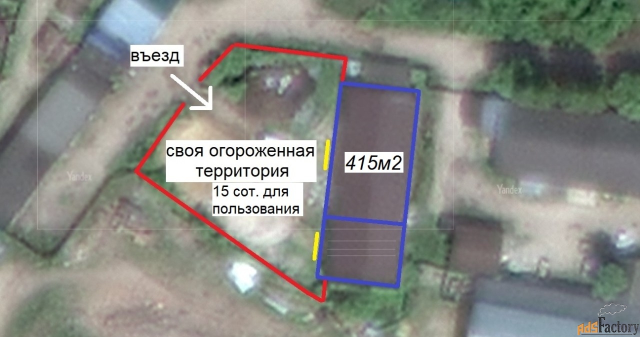 - Большие ворота 3,4м х 3,4м + отдельный вход