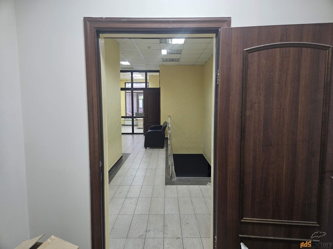 Возможное назначение - свободное назначение, высота потолков 3.5 м, внутри типовой ремонт, имеется 2 входа. Комнат - 11, на полу плитка, две мокрые точки, тип окон - обычные, окна выходят на улицу. В помещении телефон, интернет, участок находится в собственности, центральное отопление, внутри есть водоснабжение.
