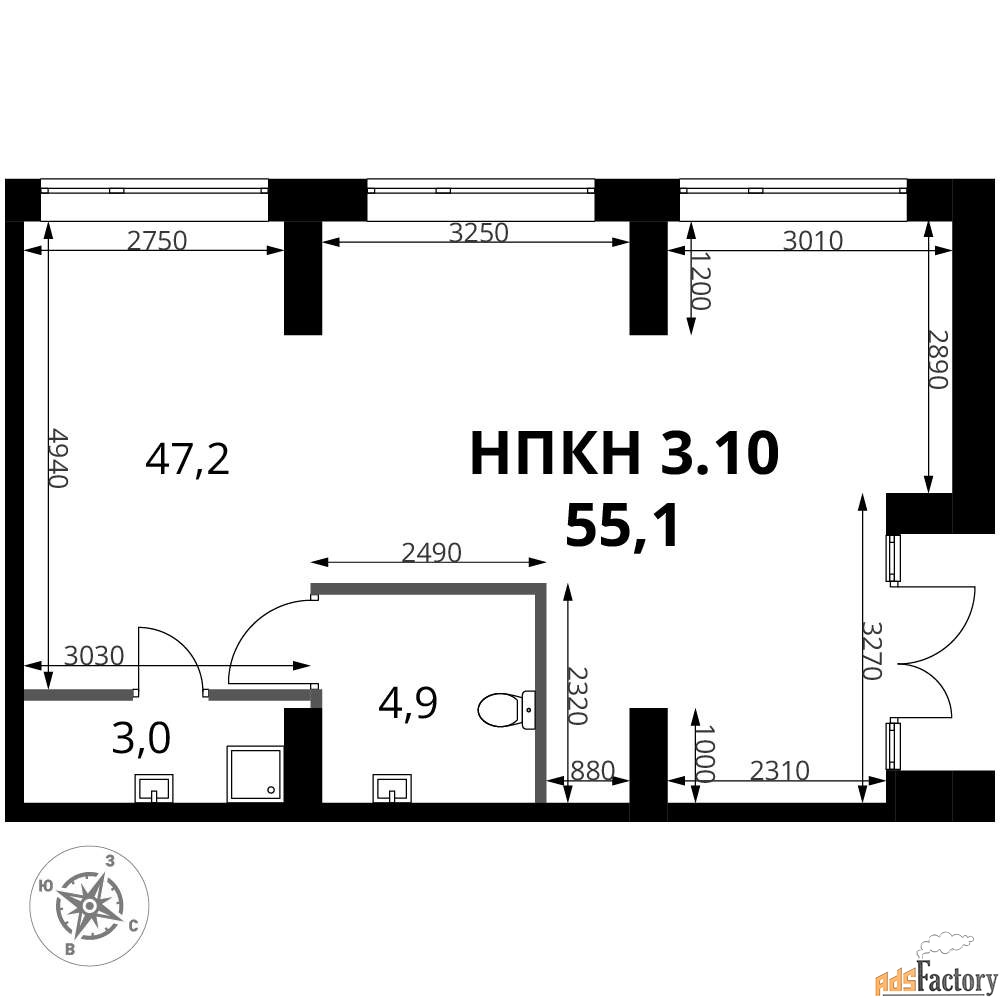 Площадь (м²) | 55.1 |